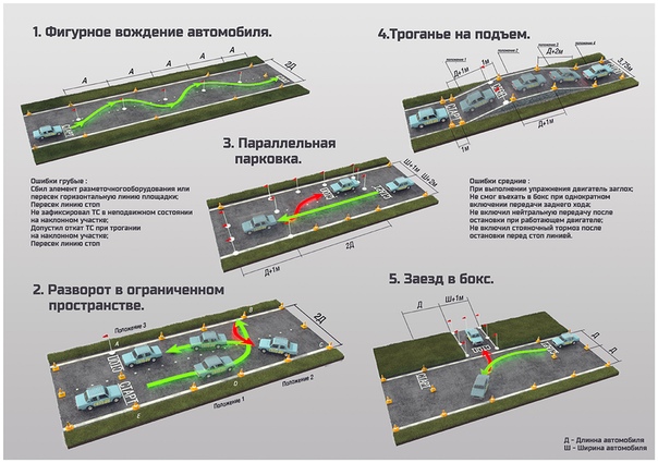 Практический экзамен в ГИБДД — площадка (упражнения на автодроме)