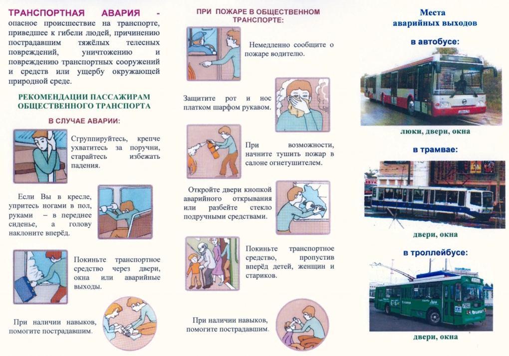 Обеспечение безопасности в общественном транспорте, как правило, ложиться на самого пассажира. Для этого следует знать, как правильно себя вести при поездке в том или ином виде транспорта и что нужно делать, если произошла экстремальная ситуация (пожар, захват, взрыв или авария).