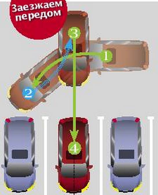 Парковка передом – наиболее редкий способ парковки, однако им широко пользуются многие водители при заезде на стоянку с оживленной дороги.