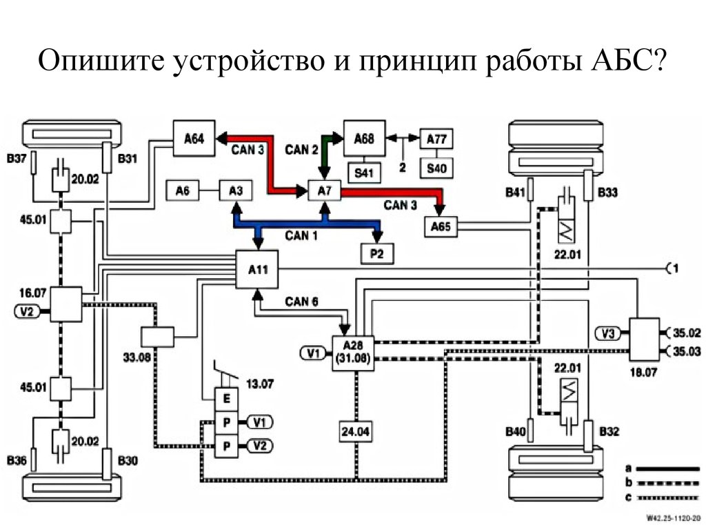Здравствуйте, уважаемые читатели! В этой статье рассказано: как работает антиблокировочная тормозная система (ABS), устройство и принцип ее действия подробно рассмотрен в описании ABS с системой динамической стабилизации легкового автомобиля.