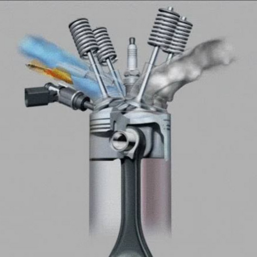 Посмотрите анимацию работы 4-тактного бензинового двигателя здесь: