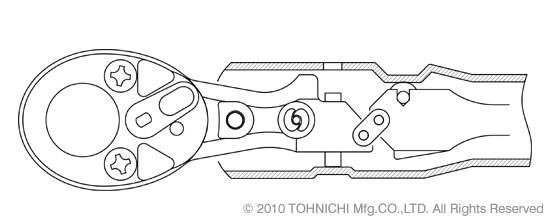 Динамометрический ключ с круговой шкалой также использует закон Гука, часто за счет отклонения торсиона в «приводном квадрате» (точка крепления гнезда). Затем движение торсиона может быть передано через «плавающую балку» часовому механизму с циферблатной шкалой. Однако у стандартного циферблатного типа есть те же недостатки, что и у плоского луча — шкала прямой видимости и показания между строками.