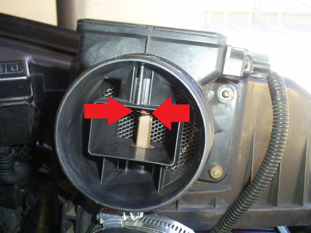 Его устанавливают между воздушным фильтром и дроссельной заслонкой, и он определяет массу всасываемого воздуха в кг/час. Датчики с нагреваемой нитью и с нагреваемой пленкой имеют один и тот же принцип работы. Расположенный в воздушном потоке и нагреваемый электрическим током проводник (платиновая нить или токопроводящая полимерная пленка) охлаждается обтекающим его воздухом.