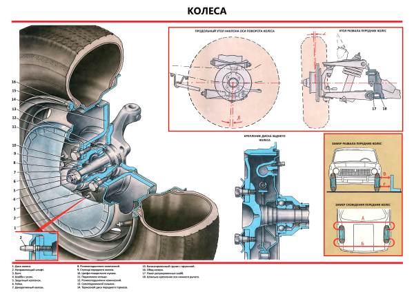 Наверное, всем известно, что любое вмешательство в ходовую часть автомобиля влечет за собой изменения углов установки колес. Эти параметры также зависят и от других факторов (давление в шинах, износ покрышек, люфты в ходовой части и т.п.). Для обеспечения хорошей устойчивости и управляемости автомобиля передние колеса установлены под определенными углами относительно элементов кузова и подвески. Конструкция передней подвески большинства автомобилей мира позволяет отрегулировать: схождение (Toe), развал (Camber) и продольный наклон шкворня (Caster). Угол поперечного наклона шкворня, как правило, задан геометрией поворотного рычага и не регулируется, но по нему опытный развальщик может определить была ли машина в аварии.