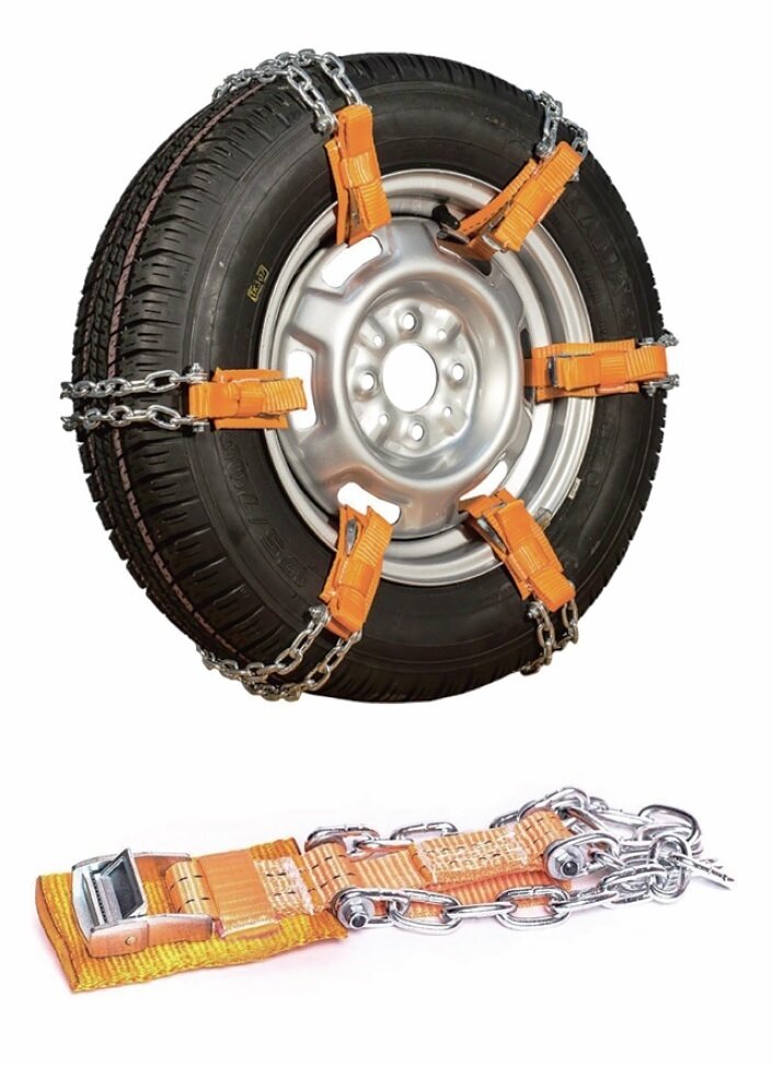 Автомобильные цепи противоскольжения – это, что-то типа сменного протектора, дающего возможность превратить обычную шоссейную шину в шину для гололеда или бездорожья. Конструктивно это цепь противоскольжения состоит из двух продольных цепей или тросов – внешнего и внутреннего, проходящих по окружности колеса, которые соединяются поперечными цепями или резиновыми «грунтозацепами”, которые значительно увеличивают сцепные свойства колес (и, соответственно, проходимость автомобиля) на льду, по рыхлому снегу, глубокой грязи и пр. На практике это может выглядеть так. Вы едете на рыбалку – проезжаете 100 км по асфальтовому покрытию на обычных шинах, а потом сворачиваете на проселок, где начинается то самое «жесткое бездорожье”.