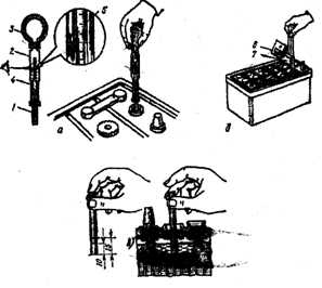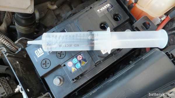 ΠΡΠΈ ΡΡΠ΅ΡΠΊΠ΅ ΡΠ»Π΅ΠΊΡΡΠΎΠ»ΠΈΡΠ° Π΅Π³ΠΎ Π½ΡΠΆΠ½ΠΎ Π½Π΅ΠΉΡΡΠ°Π»ΠΈΠ·ΠΎΠ²Π°ΡΡ, ΠΈΡΠΏΠΎΠ»ΡΠ·ΡΡ Π΄Π»Ρ ΡΡΠΎΠ³ΠΎ ΠΎΠ±ΡΡΠ½ΡΡ ΡΠΎΠ΄Ρ: ΠΊΠ°ΠΊ ΠΈΠ·Π²Π΅ΡΡΠ½ΠΎ, ΡΠ΅Π»ΠΎΡΠ½ΠΎΠΉ ΡΠ°ΡΡΠ²ΠΎΡ Π½Π΅ΠΉΡΡΠ°Π»ΠΈΠ·ΡΠ΅Ρ Π΄Π΅ΠΉΡΡΠ²ΠΈΠ΅ ΠΊΠΈΡΠ»ΠΎΡΡ. ΠΠ»Π΅ΠΌΠΌΡ Π½Π΅ΠΎΠ±Ρ ΠΎΠ΄ΠΈΠΌΠΎ ΡΠΌΠ°Π·ΡΠ²Π°ΡΡ ΠΈ ΠΎΡΠΈΡΠ°ΡΡ ΡΠ΅ΠΌ ΠΆΠ΅ ΡΠΎΠ΄ΠΎΠ²ΡΠΌ ΡΠ°ΡΡΠ²ΠΎΡΠΎΠΌ ΠΈ Π²ΡΠ΅ΠΌΡ ΠΎΡ Π²ΡΠ΅ΠΌΠ΅Π½ΠΈ ΠΏΡΠΎΠ²Π΅ΡΡΡΡ Π½Π° Π½ΠΈΡ ΡΡΠΎΠ²Π΅Π½Ρ Π½Π°ΠΏΡΡΠΆΠ΅Π½ΠΈΡ, ΠΊΠΎΠ³Π΄Π° ΡΠ°Π±ΠΎΡΠ°Π΅Ρ Π°Π²ΡΠΎΠΌΠΎΠ±ΠΈΠ»ΡΠ½ΡΠΉ Π΄Π²ΠΈΠ³Π°ΡΠ΅Π»Ρ. Π Π½ΠΎΡΠΌΠ΅ Π½Π°ΠΏΡΡΠΆΠ΅Π½ΠΈΠ΅ Π² Π·Π°ΡΡΠΆΠ΅Π½Π½ΠΎΠΌ Π°Π²ΡΠΎΠΌΠΎΠ±ΠΈΠ»ΡΠ½ΠΎΠΌ Π°ΠΊΠΊΡΠΌΡΠ»ΡΡΠΎΡΠ΅ Π΄ΠΎΠ»ΠΆΠ½ΠΎ ΡΠΎΡΡΠ°Π²Π»ΡΡΡ ΠΎΡ 12 Π΄ΠΎ 14,5 Π.