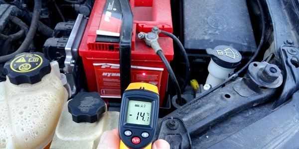 ΠΡΠΎΠ²ΠΎΠ΄ΠΈΡΡΡ Ρ ΠΏΠΎΠΌΠΎΡΡΡ ΠΌΡΠ»ΡΡΠΈΠΌΠ΅ΡΡΠ° ΠΈΠ»ΠΈ Π²ΠΎΠ»ΡΡΠΌΠ΅ΡΡΠ°. ΠΠ»Ρ ΡΡΠΎΠ³ΠΎ ΠΎΡ Π²ΡΠ²ΠΎΠ΄ΠΎΠ² ΠΠΠ ΠΎΡΡΠΎΠ΅Π΄ΠΈΠ½ΡΡΡ ΠΊΠ»Π΅ΠΌΠΌΡ Π±ΠΎΡΡΠΎΠ²ΠΎΠΉ ΡΠΈΡΡΠ΅ΠΌΡ Π°Π²ΡΠΎΠΌΠΎΠ±ΠΈΠ»Ρ, Π½Π° ΠΈΡ ΠΌΠ΅ΡΡΠΎ ΠΏΠΎΠ΄ΠΊΠ»ΡΡΠ°ΡΡ Π΄Π°ΡΡΠΈΠΊΠΈ ΠΏΡΠΈΠ±ΠΎΡΠ°. ΠΡΠΈΠ΅ΠΌΠ»Π΅ΠΌΡΠΌ ΡΡΠΎΠ²Π½Π΅ΠΌ Π½Π°ΠΏΡΡΠΆΠ΅Π½ΠΈΡ ΠΏΡΠΈΠ½ΡΡΠΎ ΡΡΠΈΡΠ°ΡΡ 12,6-12,9 Π. ΠΡΠ»ΠΈ ΠΏΠΎΠΊΠ°Π·Π°Π½ΠΈΡ ΠΏΡΠΈΠ±ΠΎΡΠ° Π½ΠΈΠΆΠ΅ ΡΡΠ°Π½Π΄Π°ΡΡΠ°, Π°ΠΊΠΊΡΠΌΡΠ»ΡΡΠΎΡ Π½ΡΠΆΠ΄Π°Π΅ΡΡΡ Π² Π·Π°ΡΡΠ΄ΠΊΠ΅ ΠΎΡ ΡΠ΅ΡΠΈ. ΠΠ»Ρ ΠΏΡΠΎΠ²Π΅ΡΠΊΠΈ Π½Π°ΠΏΡΡΠΆΠ΅Π½ΠΈΡ Π² Π±ΠΎΡΡΠΎΠ²ΠΎΠΉ ΡΠ΅ΡΠΈ ΠΊΠ»Π΅ΠΌΠΌΡ ΡΠΎΠ΅Π΄ΠΈΠ½ΡΡΡ, Π·Π°ΠΏΡΡΠΊΠ°ΡΡ Π΄Π²ΠΈΠ³Π°ΡΠ΅Π»Ρ, Π²ΠΊΠ»ΡΡΠ°ΡΡ Π½Π΅ΡΠΊΠΎΠ»ΡΠΊΠΎ ΡΠ»Π΅ΠΊΡΡΠΎΠΏΡΠΈΠ±ΠΎΡΠΎΠ². ΠΠΎΠΊΠ°Π·Π°ΡΠ΅Π»Ρ Π½Π°ΠΏΡΡΠΆΠ΅Π½ΠΈΡ Π΄ΠΎΠ»ΠΆΠ΅Π½ Π±ΡΡΡ 13-14,4 Π.