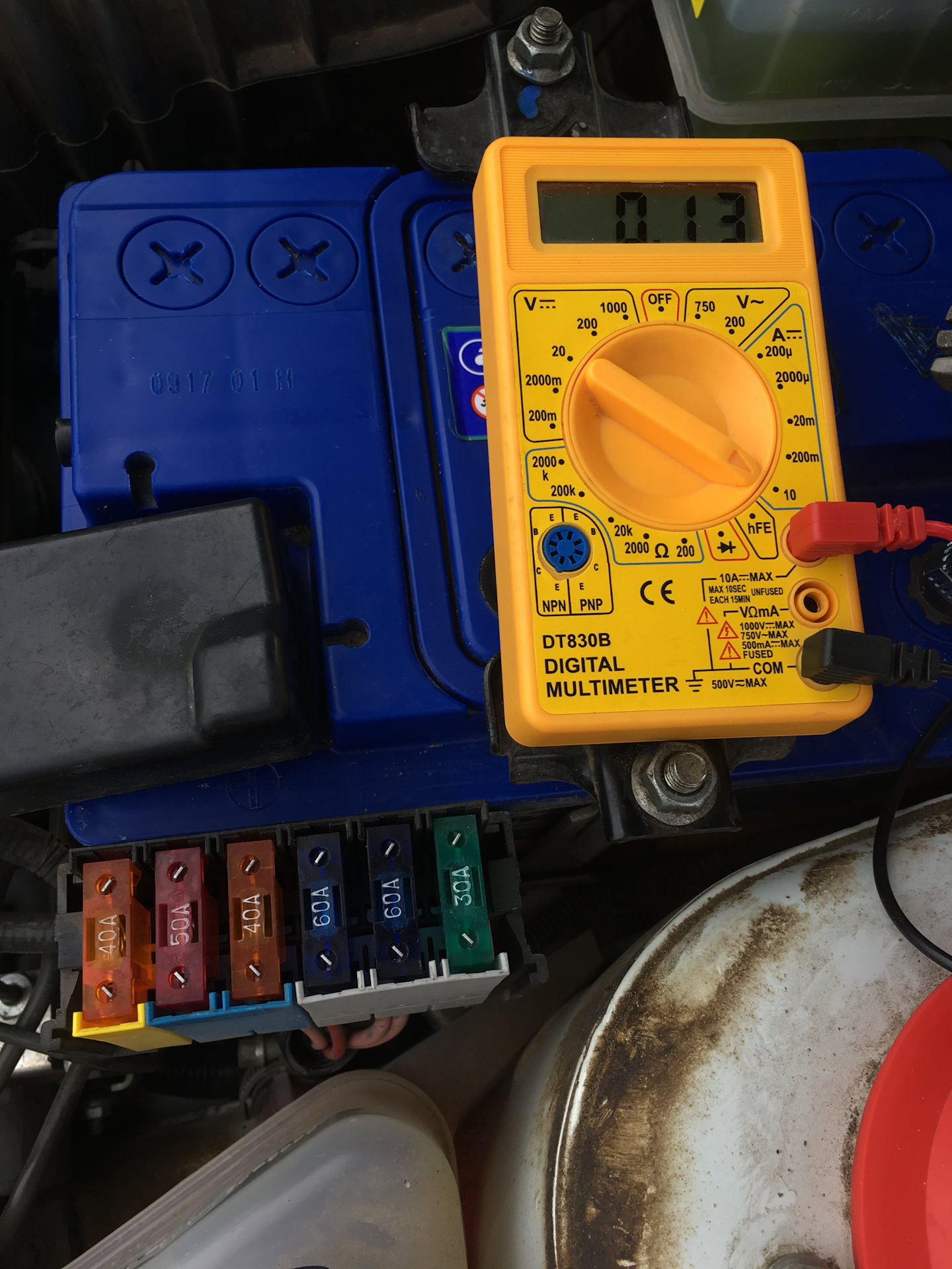 Нормальный показатель — 15-70 мА. Если цифры больше и вы с продавцом располагаете временем, попробуйте найти причину. Для этого также подключите мультиметр , после чего начните один за другим вынимать реле и предохранители.