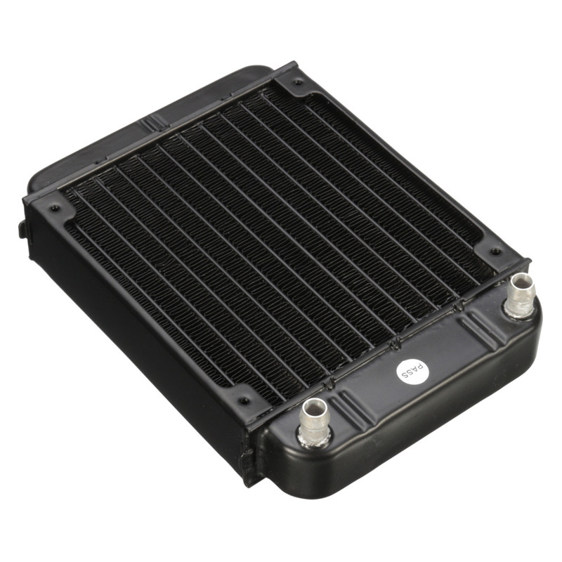 Размер радиатора записывается по размеру вентиляторов, которые можно к нему прикрутить. Так, есть радиаторы под один, два, три, четыре вентилятора и даже пять, но в большинстве случаев для четырёх уже сложно найти корпус, не говоря о пяти. Основное распространение получили радиаторы под 120×120 мм и 140×140 мм вентиляторы. Так, к примеру, радиатор под 2 кулера на 120 мм будет называться 240 мм радиатор, в то время для 140 мм — 280 мм. Если вы видите в магазине радиатор 360 мм, то это радиатор под 3 вентилятора на 120 мм или 480 мм — под 4 вентилятора на 120 мм, изображённый ниже.