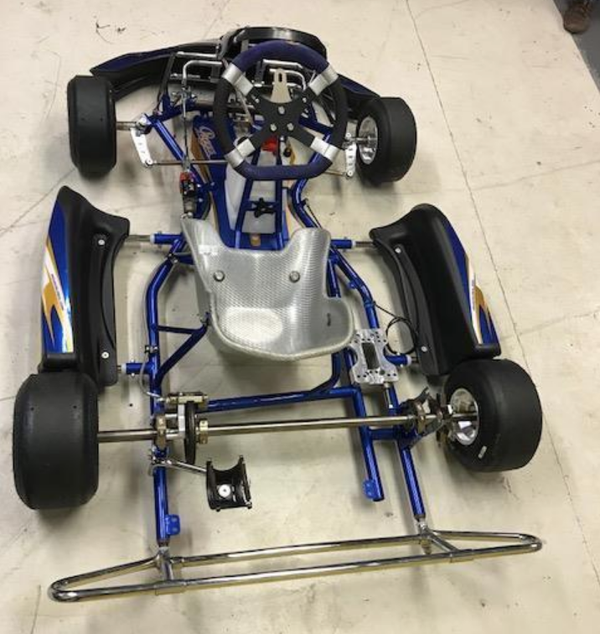 Машина для картинга в основе свой состоит из металлической рамы или можно сказать каркаса (обязательно с магнитными свойствами как железо). На раме крепят сидение, блок управления (руль, рычаг переключения скоростей, педали газа и тормоза), топливный бак, двигатель. Двигатель закрепляется на оси задних колес справа от пилота на спорт картах и сзади на прокатных. Отличительной деталью является двигатель водяного или воздушного охлаждения в спорт картах двухтактный, на прокатных — четырехтактный до 40 лошадиных сил.