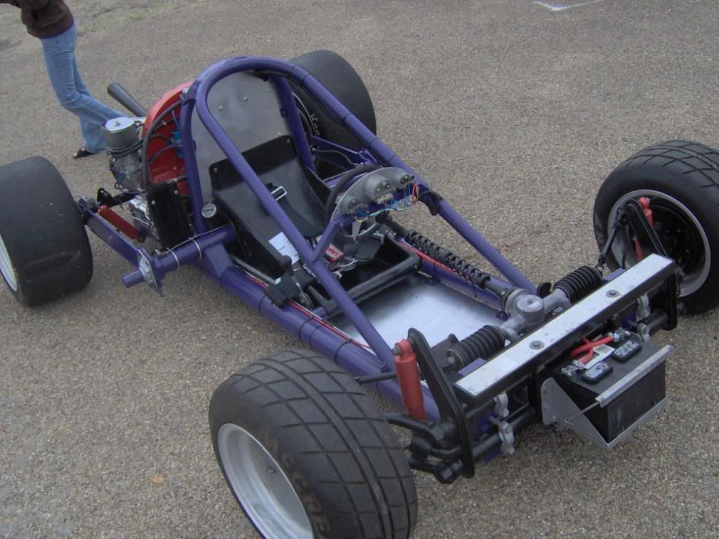Топливный бак в спортивных моделях располагают между ног пилота под рулем; в прокатных сзади, за пилотом. Амортизаторы отсутствуют, их роль выполняют рама и шины.Колеса задние обычно больше передних задних, отсутствует дифференциал, рулевое подобно автомобильному.Тормоза ставят в соответствии с классом колодочные или дисковые с гидравлическим приводом. Безопасность обеспечивают устройство щитков для защиты цепной передачи, привода задних колес и, главное, пилота.