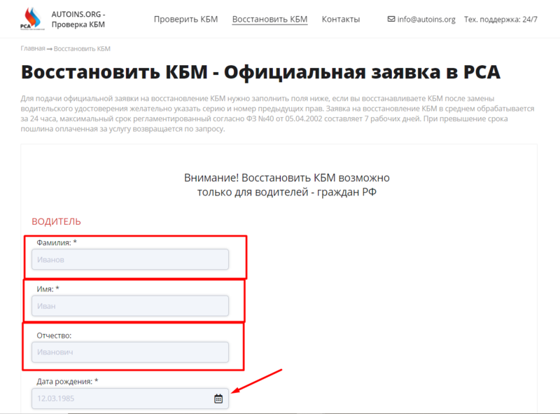 Стоит отдельно обратить внимание, что запрашивать Кбм следует именно на дату начала действия будущего полиса. В противном случае результат может оказаться некорректным.