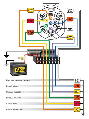 : Распиновка розетки прицепа – это схема разъемов, необходимая для соединения автомобиля с прицепом своими руками. Подключение электрики требуется, чтобы на прицепе работала вся осветительная техника, согласно правил дорожного движения.