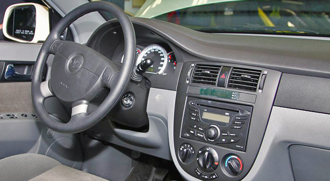Daewoo Gentra имеет практичный салон. На передней торпеде установлено головное устройство, которое выполнено в классической форме: небольшой экран, колесо управления по центру и множество разбросанных вокруг клавиш. Ниже расположены органы управления духовкой.