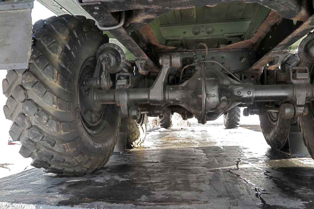 Была задействована централизованная система регулировки давления шин, всех сразу или по-отдельности. Компрессор позволял продолжать движение даже при небольших повреждения шин, однако в этом случае скорость не должна была превышать 10 км/ч.