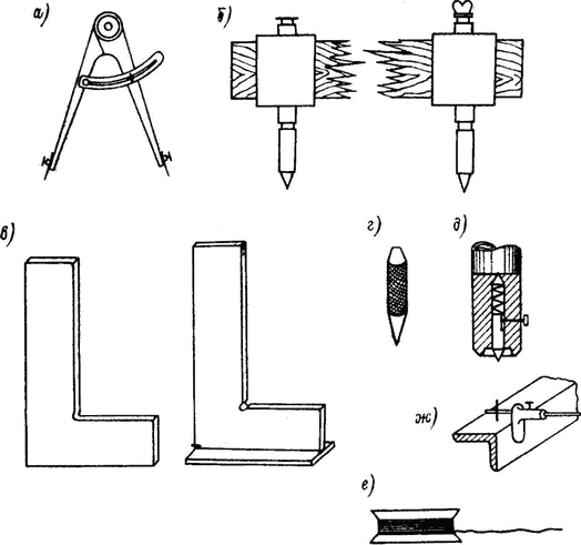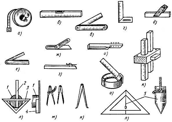 При разметке применяются различные измерительные и специальные разметочные инструменты.