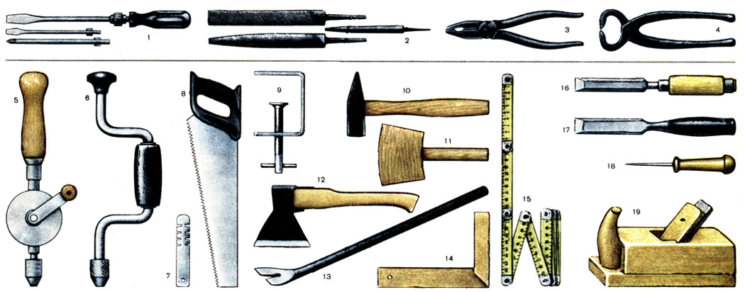 Молоток— один из древнейших инструментов, используемых человеком. Существует множество его модификаций. Молоток с закаленной головкой и круглым бойком предназначен для работы со слесарными зубилами и фасонной обработки металла. Молоток с изогнутым раздвоенным концом в виде захвата без усилий вытаскивает гвозди, но для разборки соединённых гвоздями конструкций лучше использовать модель с прямым раздвоенным концом.
