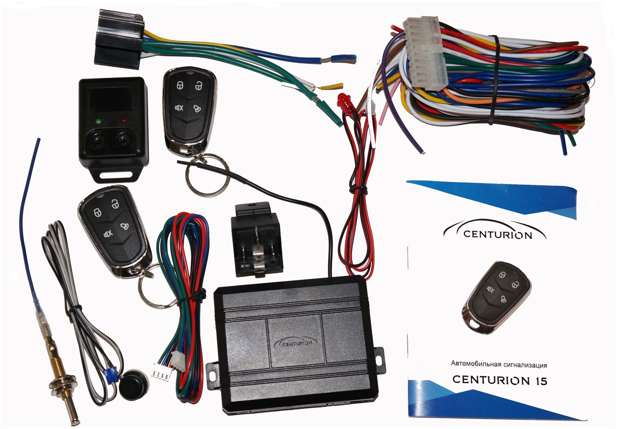 *В комплекте сигнализации вообще нет брелока с дисплеем. Для настройки сигнализации используется смартфон, с охраны авто снимается смартфоном или Блютуз-меткой.