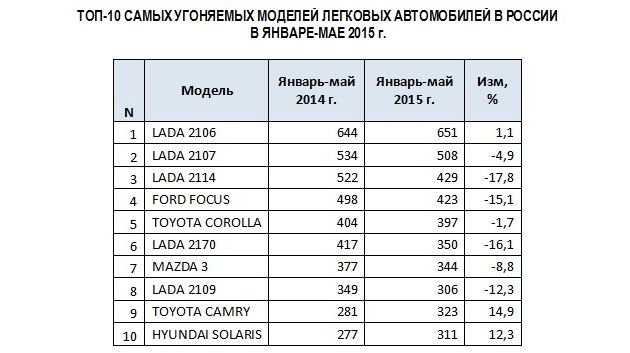 При выборе автомобиля необходимо учитывать статистику угонов. Мнение, что дешевая машина не вызывает интереса у угонщиков, не соответствует действительности.