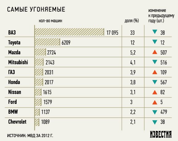 Самые угоняемые машины в Москве и России.