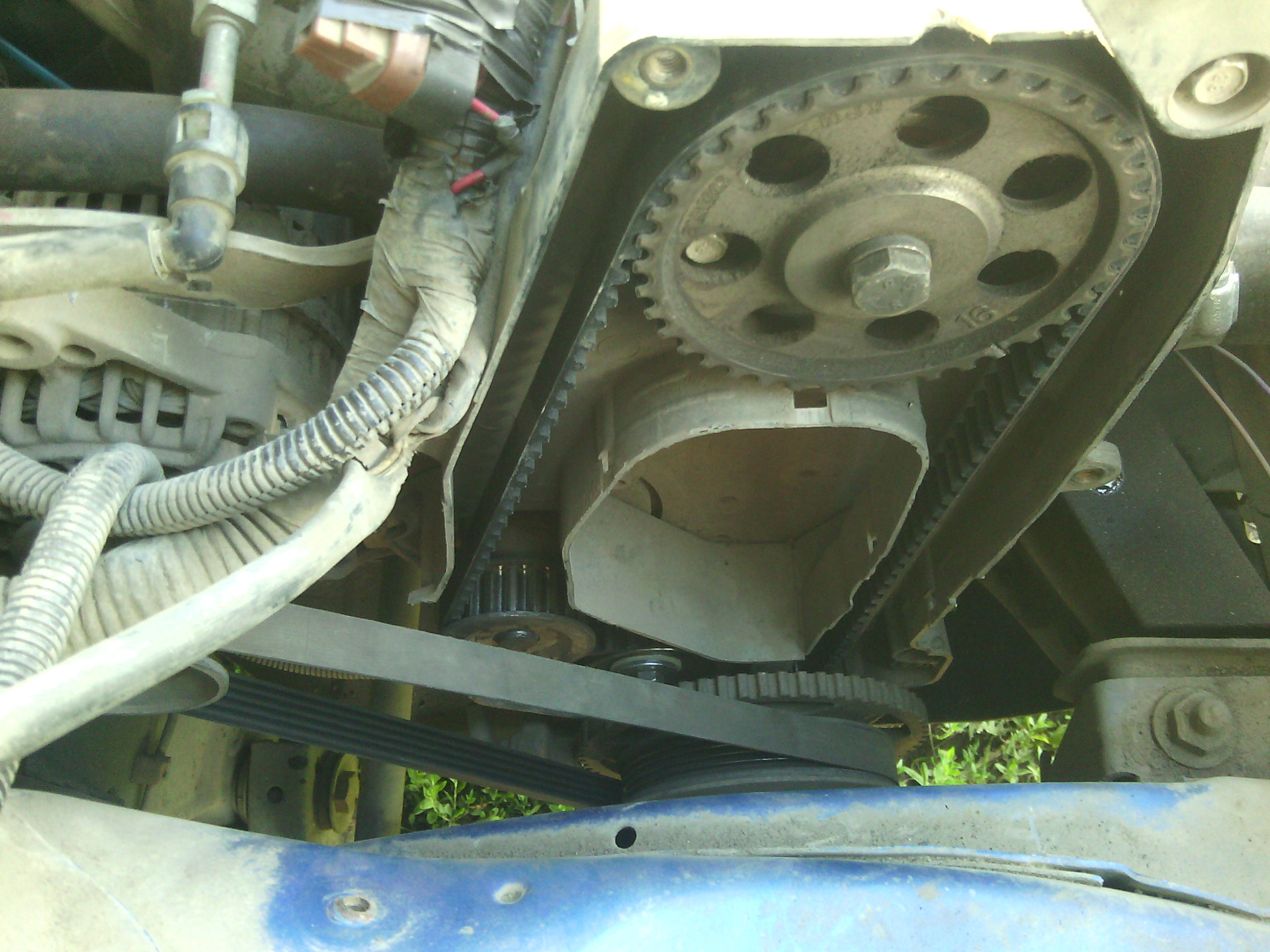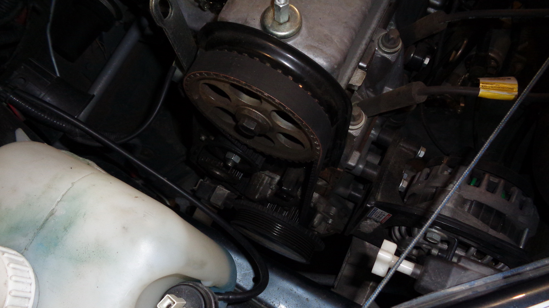 Над блоком цилиндров ДВС установлена головка, на которой можно увидеть распределительный шкив, клапана и устройства-толкатели. Диск распределительного шкива расположен за пределами ГБЦ. Для того, чтобы моторная жидкость не вытекала из-под клапанной крышки, на распределительном валу установлен специальный сальник. Ремень ГРМ, который после замены вдруг засвистел, одевается на диск распределительного шкива и начинает функционировать при вращении шестеренок коленчатого шкива.