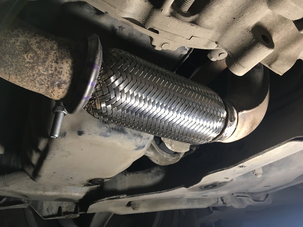 Из впускного коллектора приемная труба принимает и отправляет газы в катализатор. Она выступает в роле промежуточного элемента, на ней имеется виброкомпенсатор (чаще называется гофрой), нейтрализующий вибрации мотора, не пропуская их на систему. Нагрузка внутри системы внушительная, она касается как механического, так и температурного воздействия до 1 тыс. градусов. Здесь используются самые стойкие сплавы чугуна и стали.