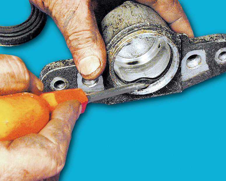 ΠΠ·Π½Π°ΡΠ°Π»ΡΠ½ΠΎ Π½ΡΠΆΠ½ΠΎ ΠΏΡΠΈΠ³ΠΎΡΠΎΠ²ΠΈΡΡ Π½Π΅ΠΎΠ±Ρ ΠΎΠ΄ΠΈΠΌΡΠ΅ ΠΊΠ»ΡΡΠΈ ΠΈ ΠΏΠΎΠ΄Ρ ΠΎΠ΄ΡΡΠΈΠ΅ ΠΏΠΎ ΡΠ°Π·ΠΌΠ΅ΡΡ ΠΏΠ°ΡΡΡΠ±ΠΊΠΎΠ² Π·Π°Π³Π»ΡΡΠΊΠΈ. Π‘Π½ΡΠ² ΠΊΠΎΠ»Π΅ΡΠΎ ΠΈ ΠΎΡΠΊΡΡΡΠΈΠ² ΠΏΠ°ΡΡΡΠ±ΠΊΠΈ, Π΄Π»Ρ ΠΏΡΠ΅Π΄ΠΎΡΠ²ΡΠ°ΡΠ΅Π½ΠΈΡ ΡΡΠ΅ΡΠΊΠΈ ΠΆΠΈΠ΄ΠΊΠΎΡΡΠΈ Π½Π°Π΄Π΅Π²Π°Π΅ΠΌ Π½Π° Π½ΠΈΡ Π·Π°Π³Π»ΡΡΠΊΠΈ. ΠΡΠΊΡΡΡΠΈΠ² ΡΠΎΠΎΡΠ²Π΅ΡΡΡΠ²ΡΡΡΠΈΠ΅ Π³Π°ΠΉΠΊΠΈ, Π΄Π΅ΠΌΠΎΠ½ΡΠΈΡΡΠ΅ΠΌ ΡΡΠ°ΡΡΠΉ ΡΠΈΠ»ΠΈΠ½Π΄Ρ ΠΈ Π½Π° Π΅Π³ΠΎ ΠΌΠ΅ΡΡΠΎ ΡΡΠ°Π²ΠΈΠΌ Π½ΠΎΠ²ΡΠΉ, ΠΏΡΠΎΠΈΠ·Π²ΠΎΠ΄Ρ ΡΠ±ΠΎΡΠΊΡ Π² ΠΎΠ±ΡΠ°ΡΠ½ΠΎΠΌ ΠΏΠΎΡΡΠ΄ΠΊΠ΅. ΠΡΠ»ΠΈ ΠΏΠΎΡΠ»Π΅ Π·Π°ΠΌΠ΅Π½Ρ, ΡΠ±ΠΎΡΠΊΠ΅ ΠΊΠΎΠ»Π΅ΡΠ° ΠΌΠ΅ΡΠ°ΡΡ ΡΠ»ΠΈΡΠΊΠΎΠΌ ΡΠ°Π·Π²Π΅Π΄Π΅Π½Π½ΡΠ΅ ΠΊΠΎΠ»ΠΎΠ΄ΠΊΠΈ, ΠΌΠΎΠΆΠ½ΠΎ ΠΏΠΎΠ΄ΠΏΠΈΠ»ΠΈΡΡ ΠΊΠΎΠ½ΡΠΎΠ²ΠΊΠΈ ΠΊΠΎΠ»ΠΎΠ΄ΠΎΠΊ, ΡΠΎΠ»ΡΠΊΠΎ Π½Π΅ ΠΏΠ΅ΡΠ΅ΡΡΠ΅ΡΠ΄ΡΡΠ²ΡΠΉΡΠ΅, ΡΡΠΎ ΠΌΠΎΠΆΠ΅Ρ ΡΠΊΠ°Π·Π°ΡΡΡΡ Π½Π° ΡΠ°Π±ΠΎΡΠ΅ ΡΡΡΠ½ΠΎΠ³ΠΎ ΡΠΎΡΠΌΠΎΠ·Π°.