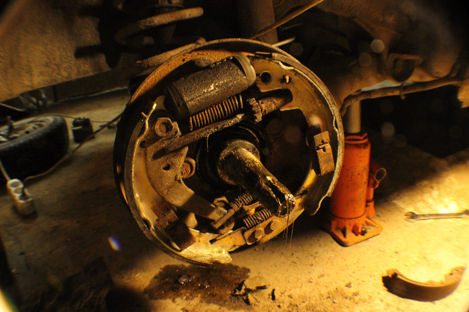 Заедание механизмов — колодки может заедать из-за попадания грязи, масла на рабочие поверхности, засорения компенсационного отверстия главного цилиндра.