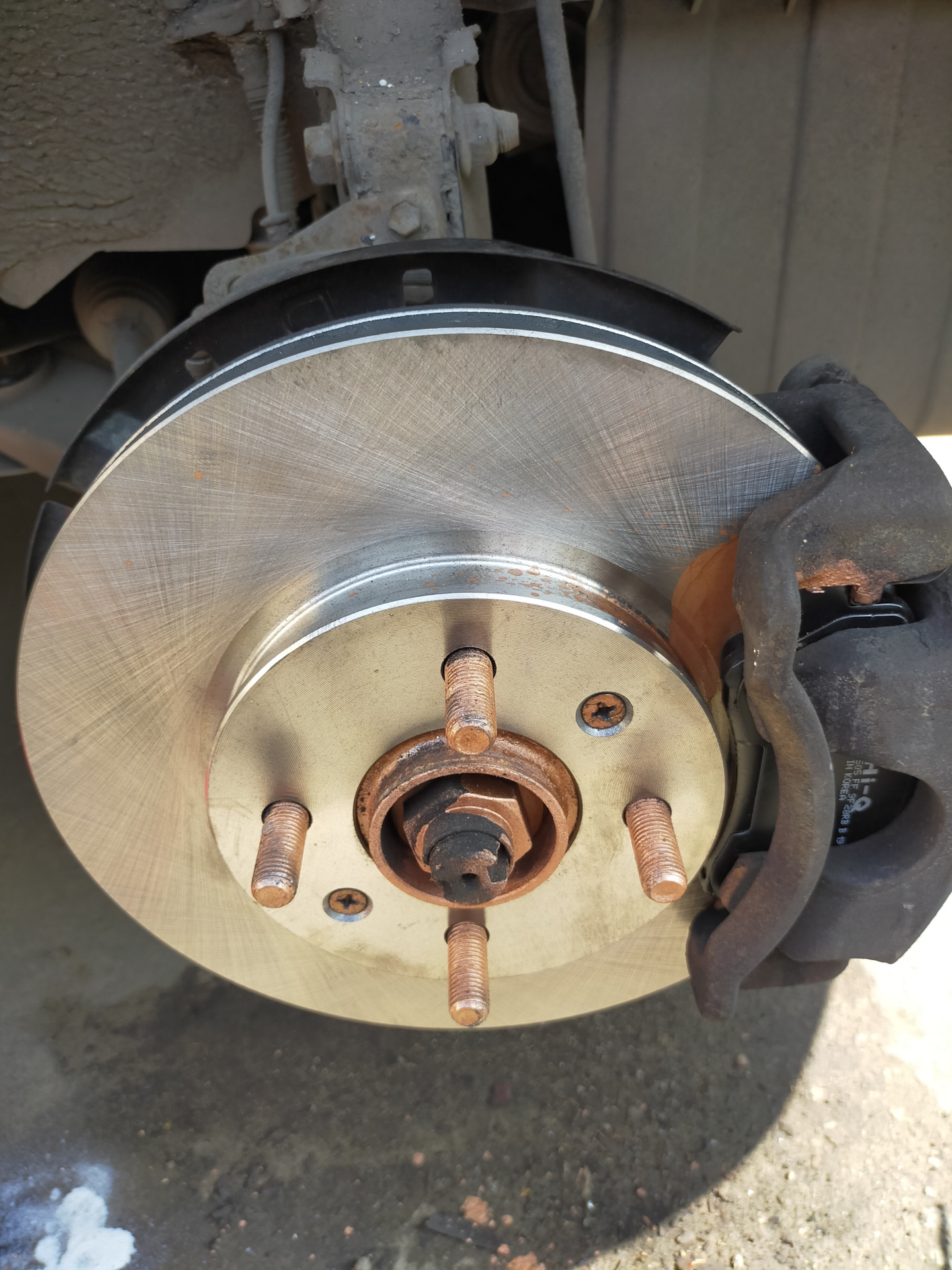 Замена либо проточка дисков. Проточка заметно продлевает ресурс дисков, однако второй раз эту операцию делать нельзя — придётся менять. Диски, как и колодки, меняются одновременно на оси, и справа, и слева. При этом желательно, чтобы детали были из одной партии — так достигается синхронность торможения.