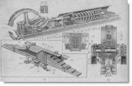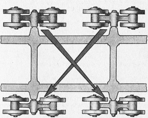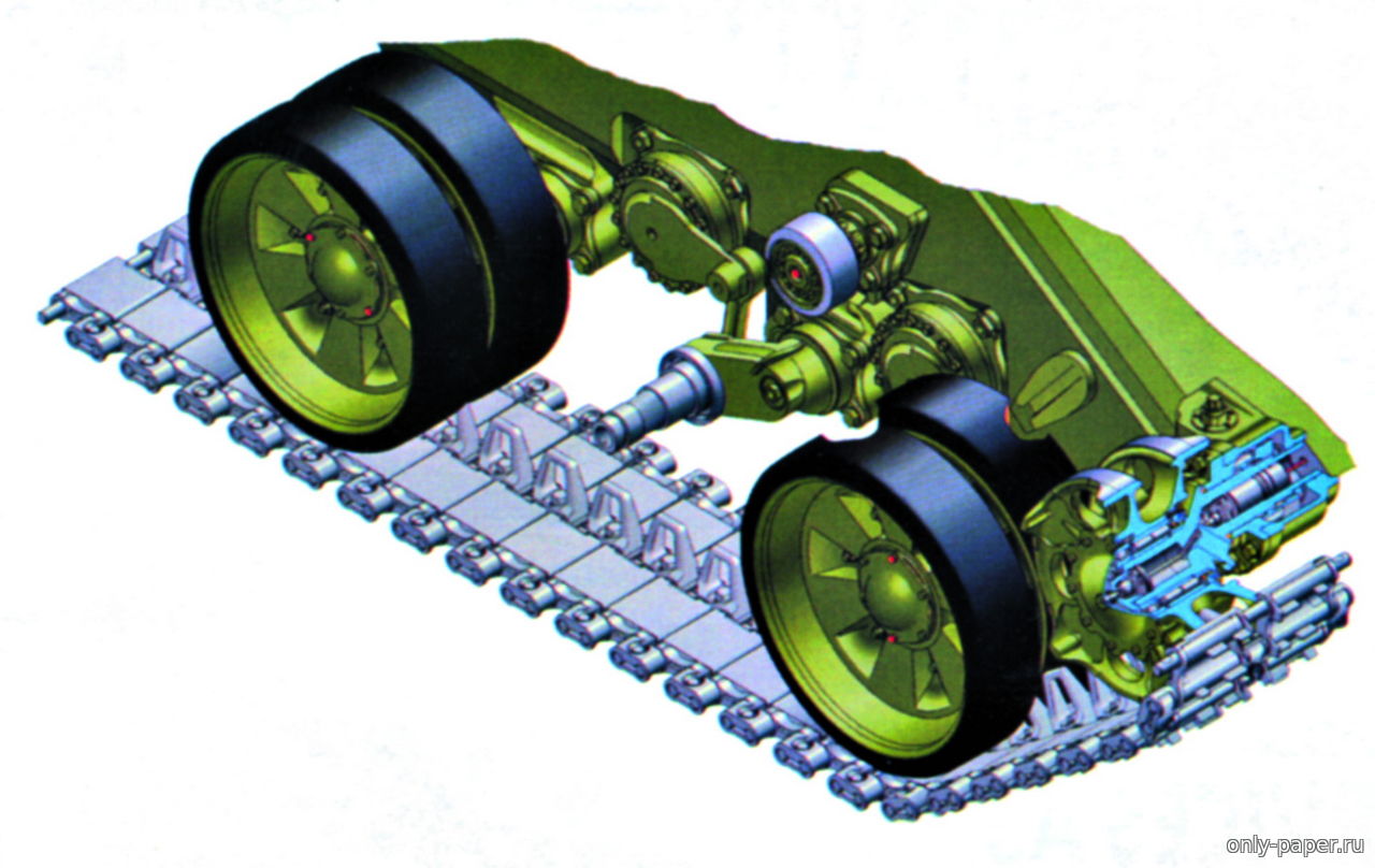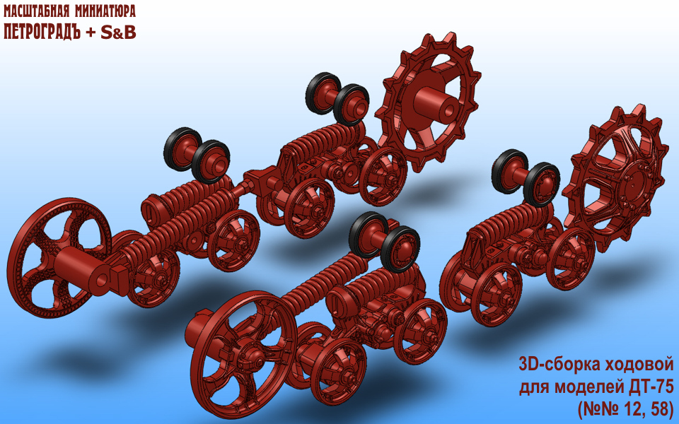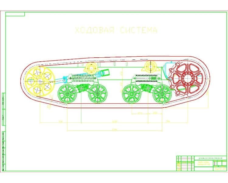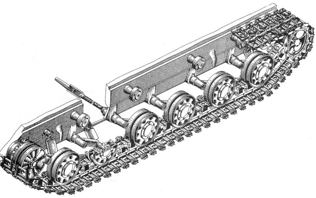 Сборка тележек гусениц происходит с рамы. Затем на них устанавливаются рессорные амортизаторы и опорные катки. На беговые дорожки накладываются рейки. Устанавливаются подкладки под ось катка в крепежных местах.