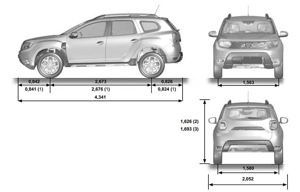 Рено ДастерГабаритные размеры, высота, длина, ширина, Колесная база, радиус поворота