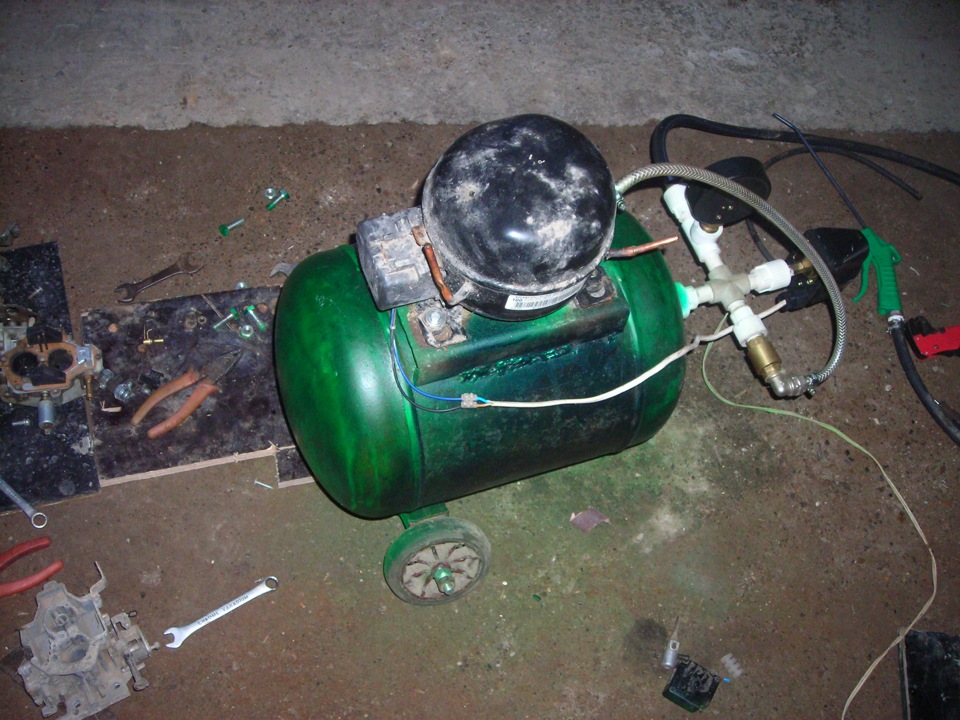 В качестве основного агрегата можно использовать компрессоры из старого бытового холодильника или же исправную б/у установку. Часто автолюбители используют компрессор на 12 вольт для подкачки колес. Вариантов множество. Главное, определиться для каких целей нужен компрессор и как много необходимо воздуха. Преимущества холодильных моторкомпрессоров в том, что они уже имеют в своей конструкции двигатель. Кроме того, они создают крайне низкое количество шума.