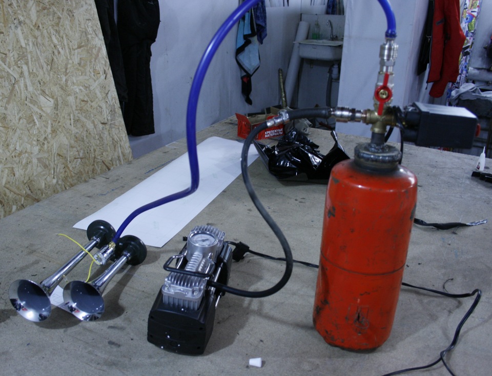 Если планируется использование мощного нагнетателя, демонтированного со старой техники, необходимо приобрести манометр и аварийный клапан, который не позволит давлению в ресивере подняться выше допустимого. Что же касается простейшего компрессора из старого колеса, то здесь вполне подойдёт и автомобильное устройство, работающее от прикуривателя и используемое для подкачки шин. Однако и такой нагнетатель может создать избыточное давление, которое приведёт к разрыву покрышки. Подобная ситуация очень опасна и чревата травмами, порой не совместимыми с жизнью. Поэтому об аварийном клапане забывать нельзя ни в коем случае.