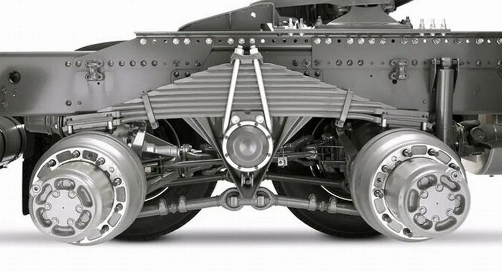 ΠΠ°Π΄Π½ΡΡ ΡΠ΅ΡΡΠΎΡΠ½Π°Ρ ΠΏΠΎΠ΄Π²Π΅ΡΠΊΠ° Π°Π²ΡΠΎΠΌΠΎΠ±ΠΈΠ»Π΅ΠΉ Π²ΡΠΏΠΎΠ»Π½ΡΠ΅ΡΡΡ Π½Π° Π΄Π²ΡΡ ΠΏΡΠΎΠ΄ΠΎΠ»ΡΠ½ΡΡ Π½Π΅ΡΠΈΠΌΠΌΠ΅ΡΡΠΈΡΠ½ΡΡ Π»ΠΈΡΡΠΎΠ²ΡΡ ΡΠ΅ΡΡΠΎΡΠ°Ρ . ΠΠ°ΠΆΠ΄Π°Ρ ΡΠ΅ΡΡΠΎΡΠ° ΡΠΎΡΡΠΎΠΈΡ ΠΈΠ· ΡΠ΅ΡΡΠΈ Π»ΠΈΡΡΠΎΠ², ΡΡΡΠ½ΡΡΡΡ ΡΠ΅Π½ΡΡΠΎΠ²ΡΠΌ Π±ΠΎΠ»ΡΠΎΠΌ ΠΈ ΠΎΡ Π²Π°ΡΠ΅Π½Π½ΡΡ ΡΠ΅ΡΡΡΡΠΌΡ Ρ ΠΎΠΌΡΡΠ°ΠΌΠΈ ΠΏΠΎ ΠΊΠΎΠ½ΡΠ°ΠΌ. ΠΠ΅ΠΆΠ΄Ρ ΠΏΠ΅ΡΠ²ΡΠΌΠΈ ΡΠ΅ΡΡΡΡΠΌΡ Π»ΠΈΡΡΠ°ΠΌΠΈ ΡΡΡΠ°Π½ΠΎΠ²Π»Π΅Π½Ρ ΠΏΠΎΠ»ΠΈΡΡΠΈΠ»Π΅Π½ΠΎΠ²ΡΠ΅ ΠΏΡΠΎΠΊΠ»Π°Π΄ΠΊΠΈ Π΄Π»Ρ ΡΡΡΡΠ°Π½Π΅Π½ΠΈΡ ΡΠΊΡΠΈΠΏΠ° ΠΈ ΠΏΠΎΠ²ΡΡΠ΅Π½ΠΈΡ Π΄ΠΎΠ»Π³ΠΎΠ²Π΅ΡΠ½ΠΎΡΡΠΈ ΡΠ΅ΡΡΠΎΡ. ΠΠ»Ρ ΡΠΌΡΠ³ΡΠ΅Π½ΠΈΡ ΠΏΠ΅ΡΠ΅Π΄Π°ΡΠΈ Π΄ΠΎΡΠΎΠΆΠ½ΡΡ Π²ΠΈΠ±ΡΠ°ΡΠΈΠΉ Π½Π° ΠΊΡΠ·ΠΎΠ² ΠΈ ΡΡΠΌΠΎΠ² ΠΊΡΠ΅ΠΏΠ»Π΅Π½ΠΈΠ΅ ΡΠ΅ΡΡΠΎΡΡ ΠΊ Π·Π°Π΄Π½Π΅ΠΌΡ ΠΌΠΎΡΡΡ ΠΎΡΡΡΠ΅ΡΡΠ²Π»ΡΠ΅ΡΡΡ ΡΠ΅ΡΠ΅Π· ΡΠ΅Π·ΠΈΠ½ΠΎΠ²ΡΠ΅ ΠΏΠΎΠ΄ΡΡΠΊΠΈ. β[6]