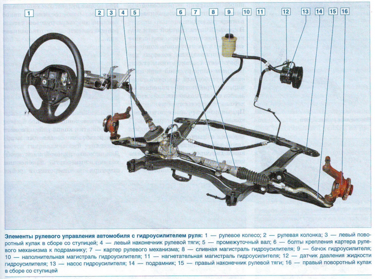 Устройство рулевой системы включает следующие элементы: