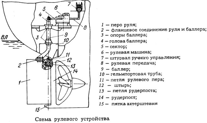 суда (за исключением некоторых несамоходных) независимо от назначения оборудуют рулевыми устройствами, обеспечивающими их управляемость. Рулевое устройство состоит из рулей или поворотных направляющих насадок; рулевого привода, связывающего баллер (вал поворота руля) с рулевой машиной; рулевой машины и средств управления ею.