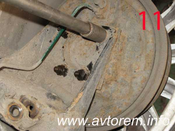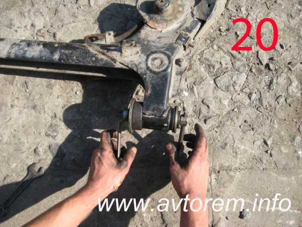 Немного опускаем гайки крепежа цапфы к задней балке, предварительно смочив резьбы маслом или тормозной жидкостью (фото 11)