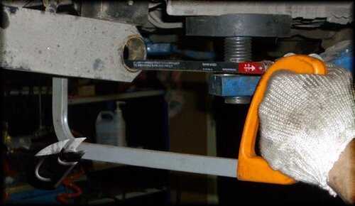 - Тиски небольших размеров. Их надевают на деталь подвески, а под одну из сторон подкладывают трубку. Вторую часть важно установить так, чтобы она давила на корпус детали. Но между губой тисков и деталью устанавливают деревяшку.