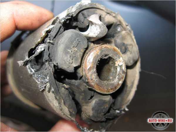 На фото показано примерное состояние сайлентблока, который нуждается в замене. Характерные признаки износа: