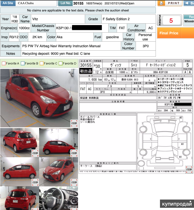 Совет покупателю: Комментарии в аукционном листе о состоянии автомобиля следует интерпретировать с осторожностью. Например, автомобили, которые никогда не ремонтировались, но подвергались легкой чистке и полировке, могут получить оценку 5. В то время как автомобили с большим пробегом, детали которых были отремонтированы или заменены, могут получить оценку 4.