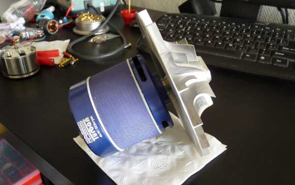 Кит построен на полноценном центробежном компрессоре. Мотор бесколлекторный. К слову, поверьте мне — только бесколлекторный мотор может создать достаточный крутящий момент и обороты чтобы вращать компрессор. Он требует специального контроллера скорости вращения, мотор 3х фазный.