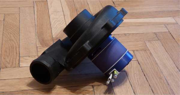 Мы удалили из неё всё лишнее и расточили под крепление мотора. Все подшипники находятся непосредственно в моторе и крыльчатка одевается на его вал, что автоматически даёт соосность вала мотора и крыльчатки. Поскольку турбина будет вращаться на очень больших оборотах мы подобрали в мотор высокоскоростные подшипники SKF итальянского производства.