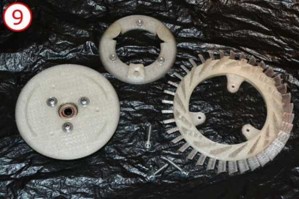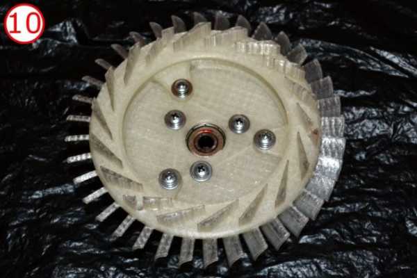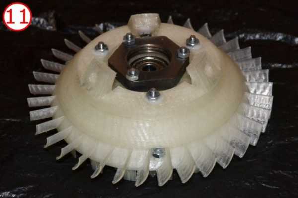 Самое сложное в изготовлении и самое важное для работы турбины — это ступень компрессора. Обычно для его сборки требуется точный обрабатывающий инструмент с ЧПУ или ручным приводом. К счастью, компрессор работает при низкой температуре и может быть напечатан на 3D-принтере.