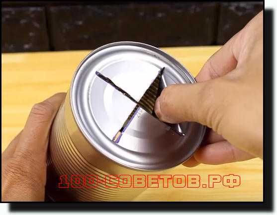 Потом берём болгарку и делаем пропилы по фломастеру крест-накрест, затем загибаем уголки во внутрь.