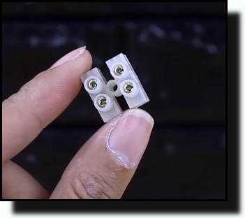 Провода просунул в третье, проделанное отверстие в банке и с помощью клея приклеил эту пластмассовую колодку прямо к банке.