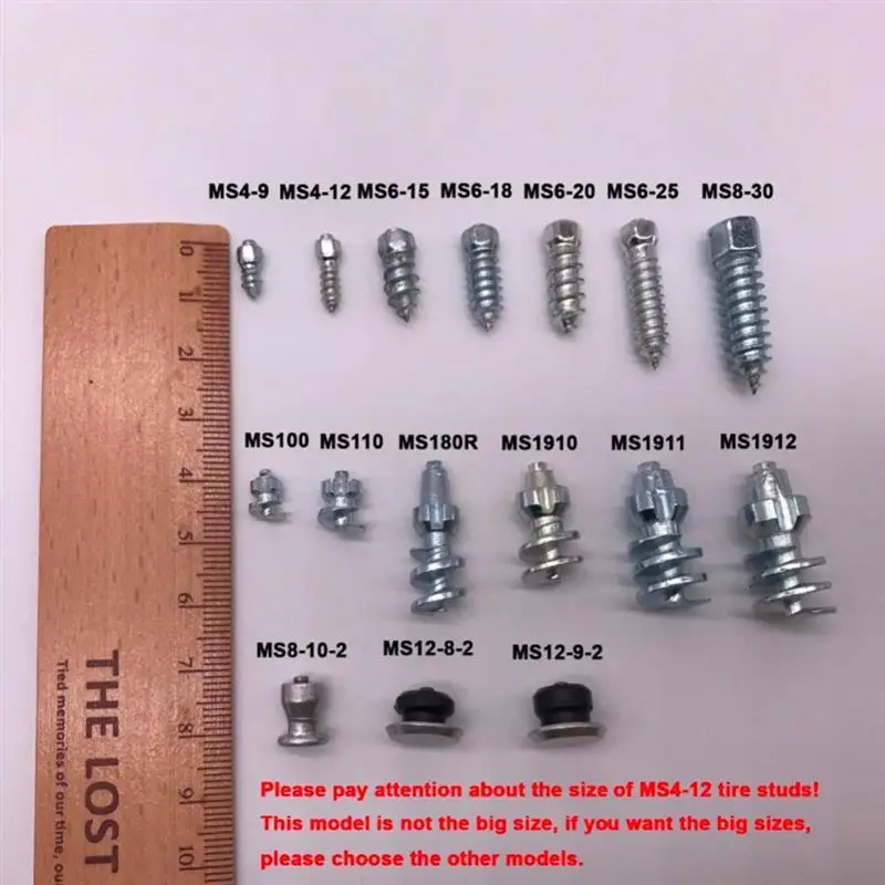 Итак, первые шипы изготавливались из стали, имели диаметр около 9 мм, высоту 14 мм и вес порядка 3 г. Однако быстро выяснилось, что такие шипы изрядно вредят асфальтовому покрытию: проведенные исследования показали, что установленные на одном автомобиле шины такого типа «выгрызают» с каждого километра дороги более 150 граммов асфальта!