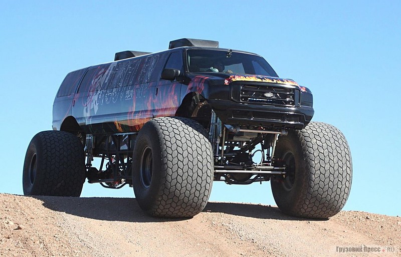 Его высота равна примерно двум метрам. Рабочий объем бензинового двигателя — 5,6 л, мощность — 325 л. с. Четырехрежимная трансмиссия, постоянный полный привод, понижающая передача делают автомобиль вполне пригодным для несложного бездорожья.