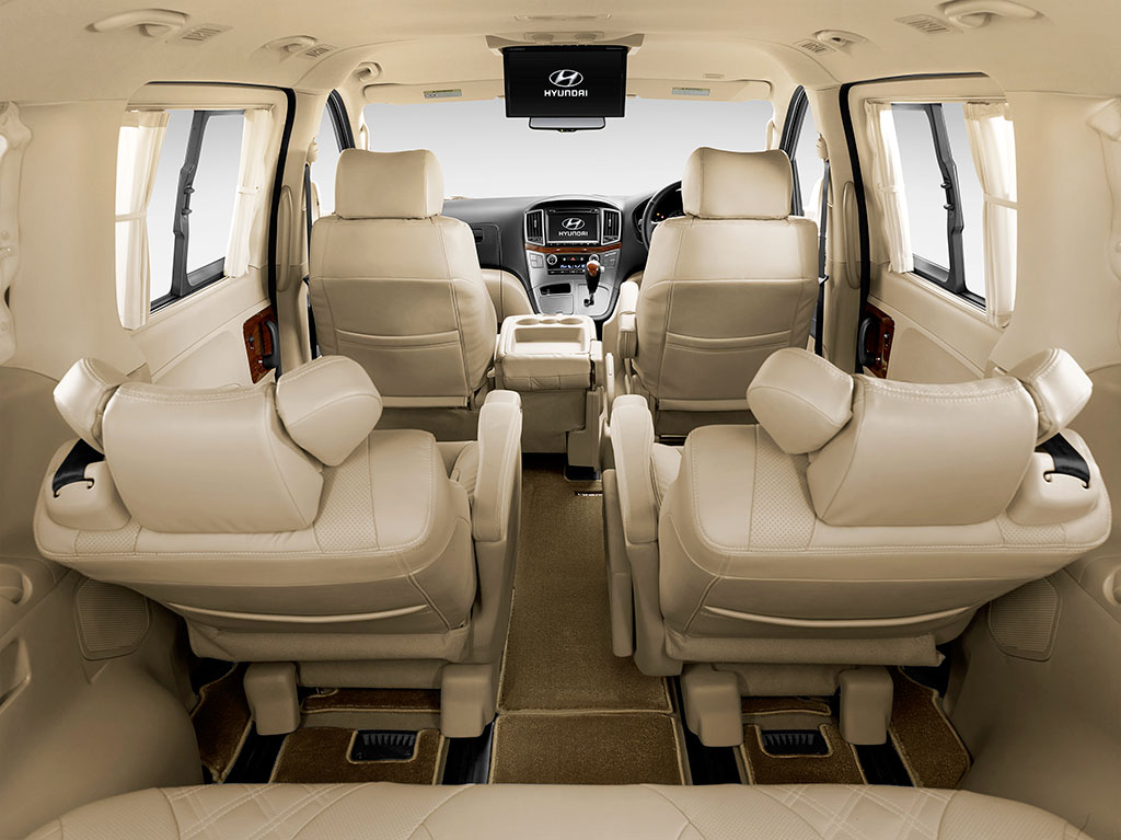 Благодаря мягкой подвеске 11-местный Hyundai спокойно идет даже по разбитой дороге. Микроавтобус легок в управлении, юркий и маневренный, тормоза надежные. Машина оборудована парктроником (парковочным радаром) и бортовой компьютерной системой, подключена к навигации. В салоне Grand Starex кожаные сидения с регулировками, телевизор с проигрывателем DVD. Функционирует кондиционер и климат-контроль. Предусмотрены подушки безопасности.Grand Starex – подходящий вариант для деловых встреч и небольших корпоративов.