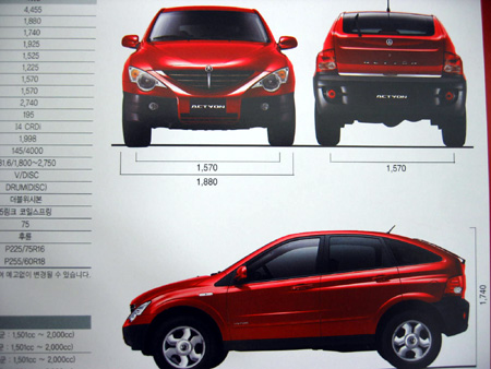 | Актион Спорт SX | Технические характеристики: 2,0 л, дизель, 6-ступенчатая механическая коробка передач | Высота х Ширина х Длина: 1790 х 1910 х 4990 |