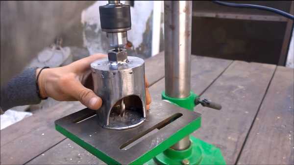 Последние штрихи по работе над опорами. Вырезаем отверстие для болтового соединения в середине верхней опоры. Отверстие легко можно сделать с помощью дрели и далее рассверлить отверстие до нужных размеров токарным станком. Перейдем к нижней опоре. Там также нужно просверлить отверстие посередине. Размеры отверстия должны быть чуть больше осей, с которых вы будете демонтировать подшипники. После вырезаем деталь в виде треугольника. На этом этап работы над опорами закончен.